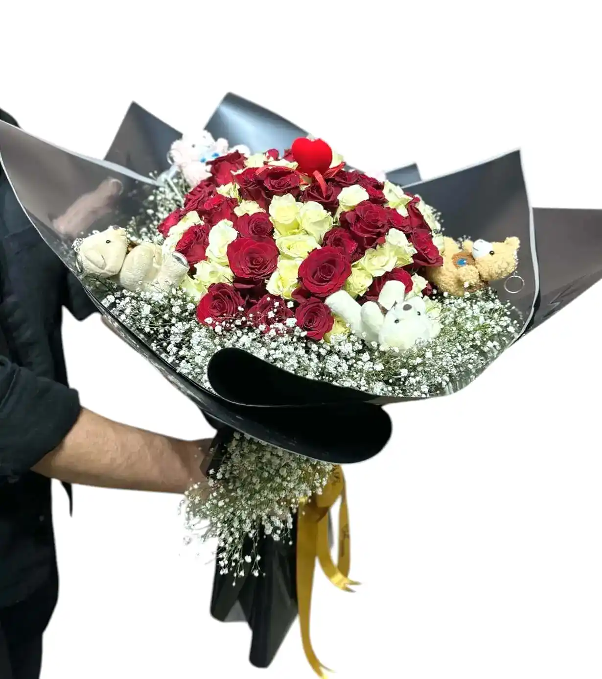 Bu benzersiz buket sadece güllerden oluşmuyor! İçinde yer alan 5 adet minik peluş ayıcık, sevdiğinize hem romantik hem de sevimli bir jest yapmanızı sağlıyor. Aşkın en tatlı haliyle buluşmaya hazır olun!