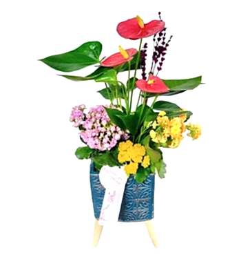 Anthurium Basket içerisinde kırmızı antoryum ve renkli kalanşolar mevcut olup uzman çiçek tasarım ekibimizin sizler için yakınlarınızın özel günlerinde harika bir hediye fırsatı sunmaktadır.