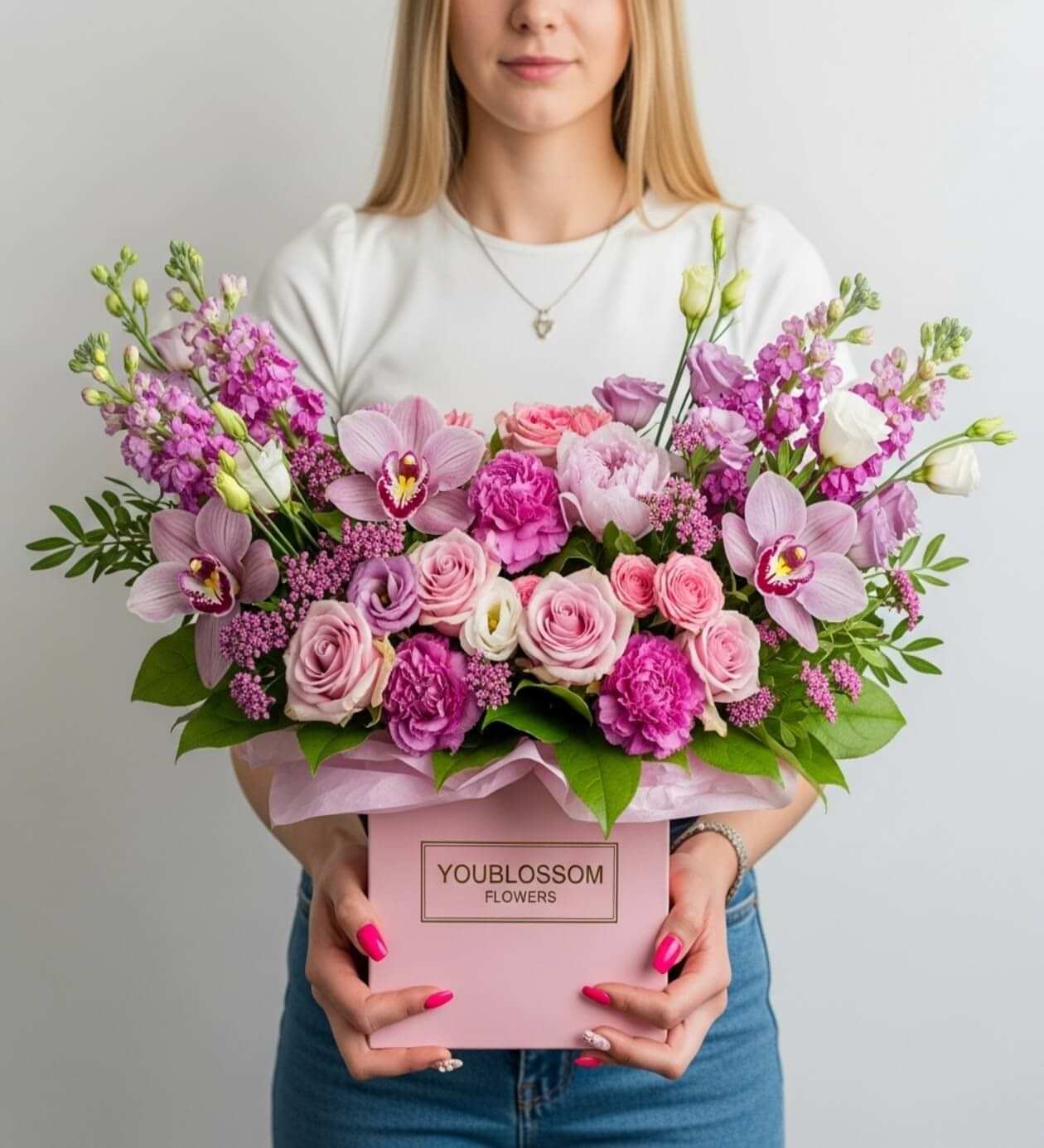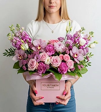 Her Blooming Elegance Box, YouBlossom floristleri tarafından özenle hazırlanır ve İstanbul içi aynı gün teslim edilir.