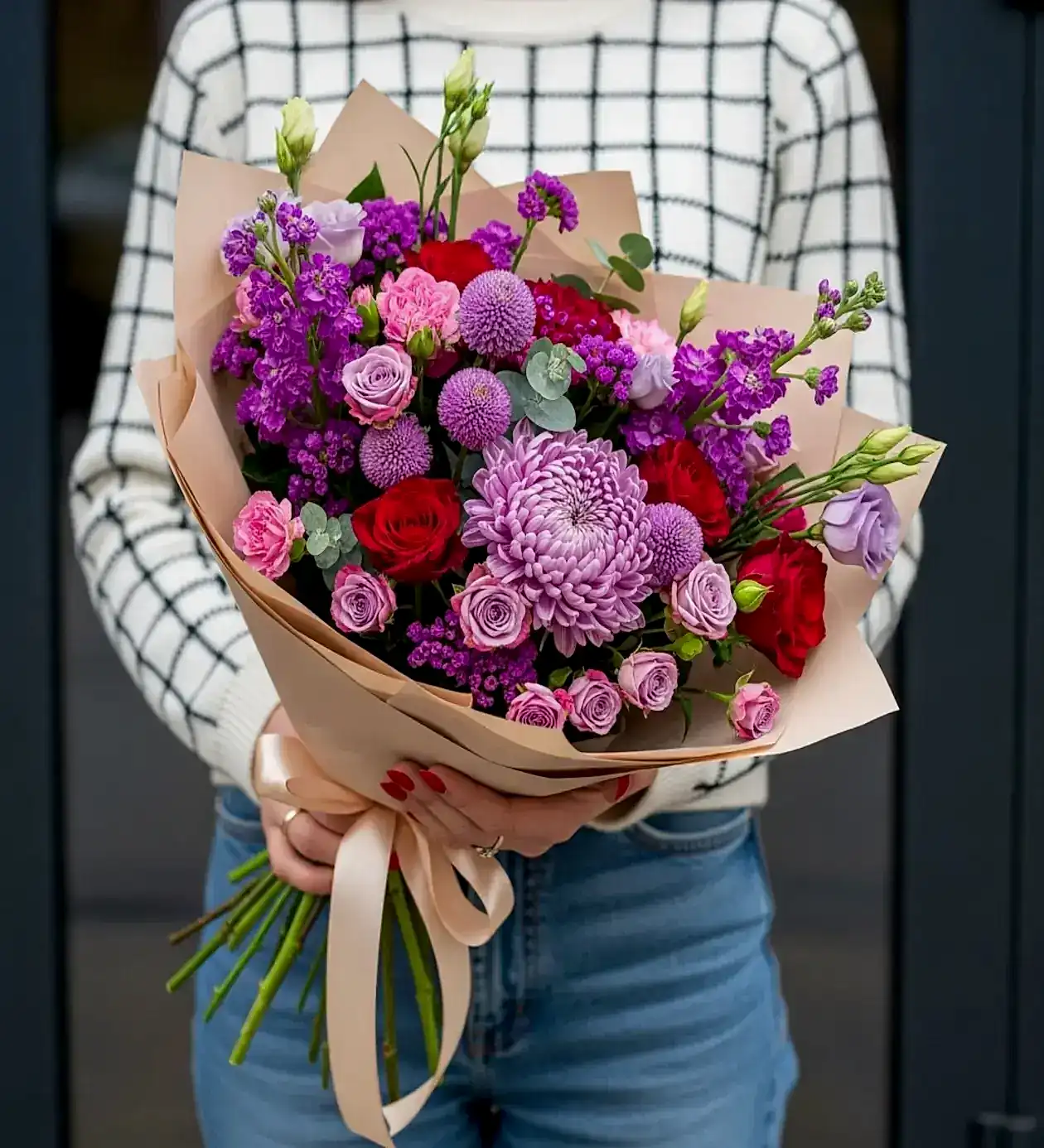 Renkli Hayaller – Gül & Krizantem Karışık Premium Buket, enerjik ve modern tasarımıyla sevdiklerinize mutluluk katıyor.
