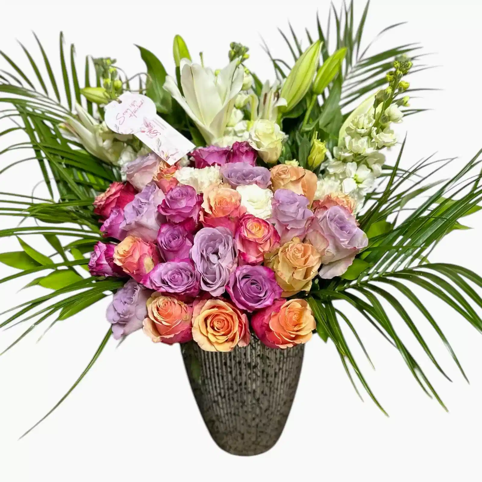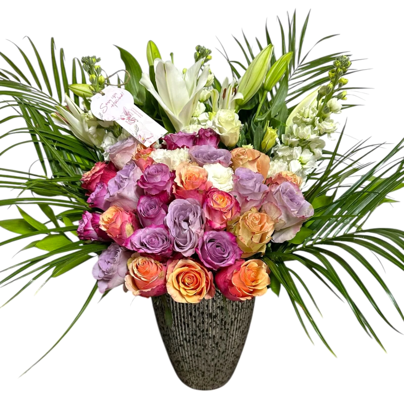 Davina Dianora Deluxe, lüks çiçek aranjmanlarının en özel örneklerinden biridir. Pastel tonlardaki büyüleyici lila, pembe, somon ve beyaz güllerden oluşan bu eşsiz aranjman, zarafeti ve şıklığı bir arada sunar. İster bir kutlama için ister sıradan bir günü anlamlı kılmak için, bu lüks çiçek aranjmanı her zaman unutulmaz bir hediye seçeneğidir. Özenle tasarlanan bu aranjman, sevdiklerinize duygu dolu bir mesaj iletmek için mükemmel bir yoldur.