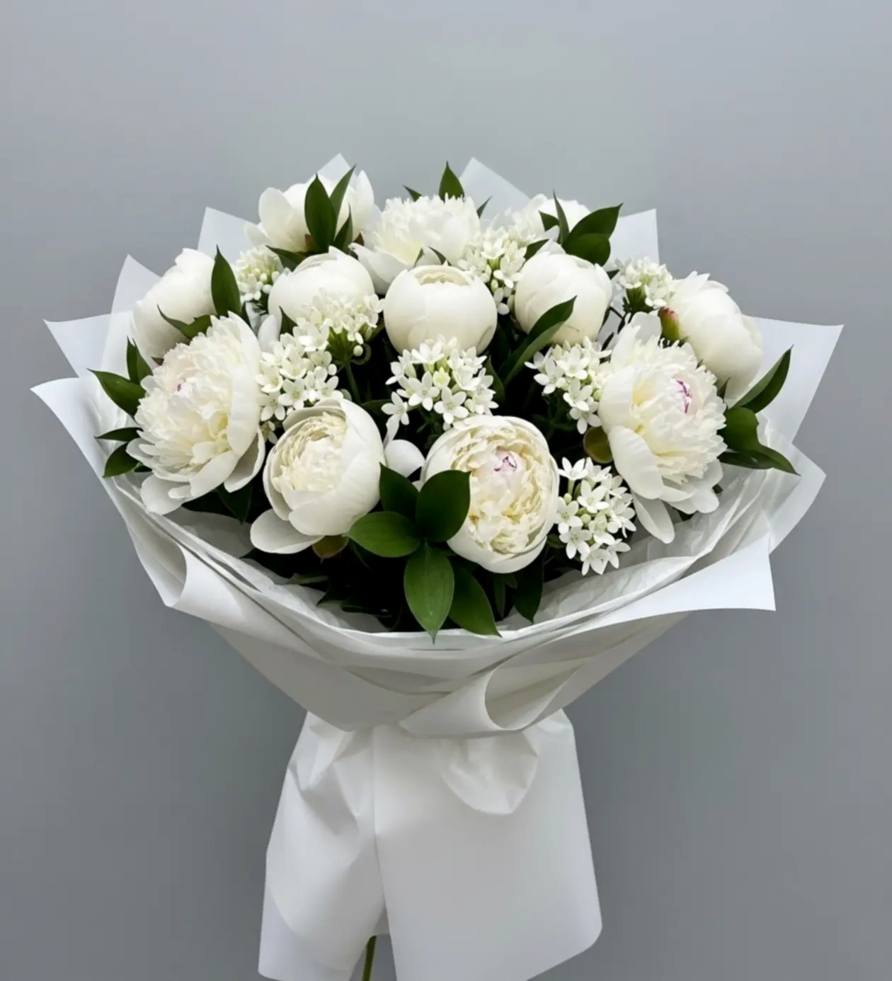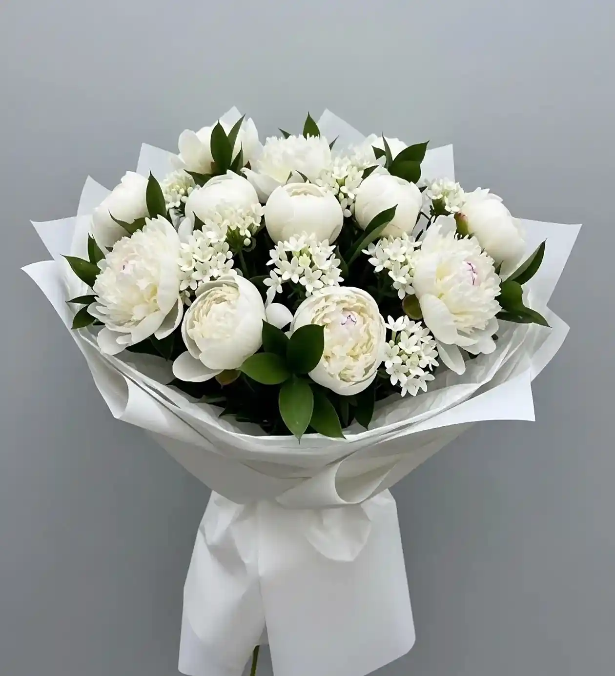✨ Kız isteme gününü unutulmaz kılın. Beyaz Şakayık Buketi ile zarafeti ve saflığı armağan edin.