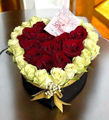 Kalp Kutuda Kırmızı ve Beyaz Gül içerisinde beyaz gül ve kırmızı gül mevcut olup uzman çiçek tasarım ekibimizin sizler için yakınlarınızın özel günlerinde harika bir hediye fırsatı sunmaktadır.
