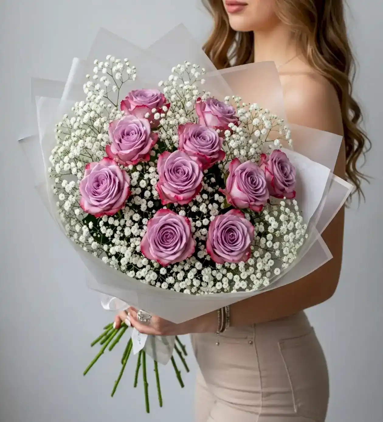 Güllerin en farklı ve büyüleyici tonlarından biri olan lila gül, gizemi ve eşsiz sevgiyi temsil eder. Lavanta Aşkı – 11 Lila Gül & Beyaz Cipso Buketi, zarif görünümü ve modern tasarımıyla özel günlerinize anlam katmak için hazırlandı.