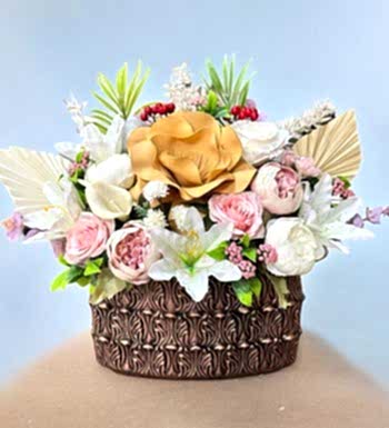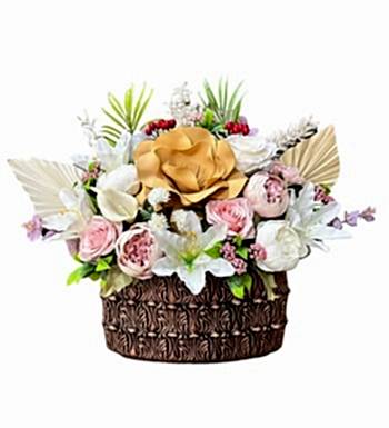Lüks Yapay Çiçek Aranjmanı ürünümüzün bulunduğu ortamda harika bir çiçek görünümüne sahip olmakla birlikte özenle ve kaliteli ile hazırlanmaktadır.