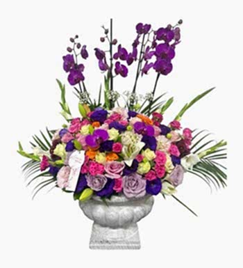 Luxury Purple Orchid Arrangement ürünümüzün bulunduğu ortamda harika bir çiçek görünümüne sahip olmakla birlikte özenle ve kaliteli ile hazırlanmaktadır.