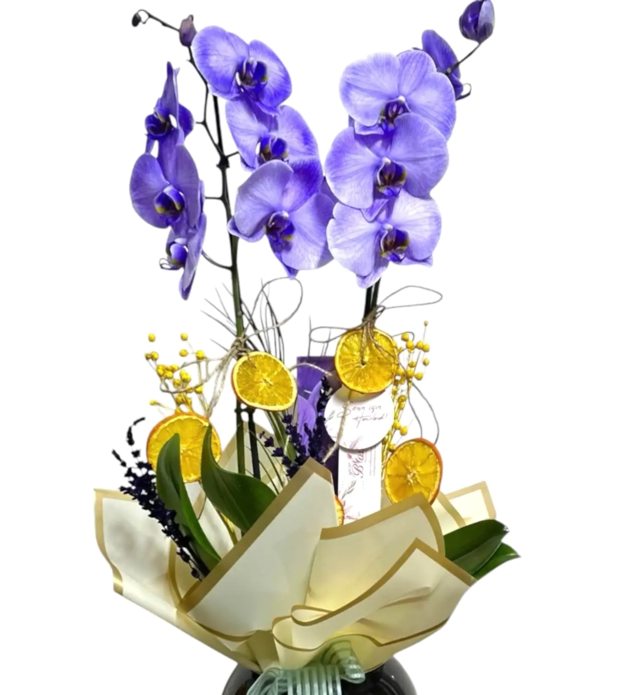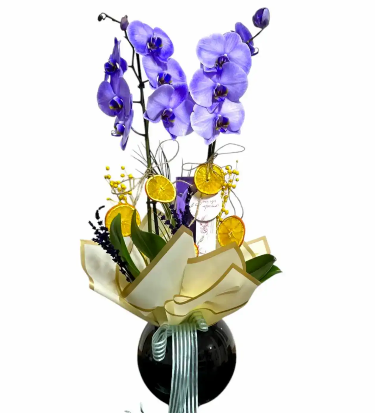 Özel anlara ayrıcalık katan Mavi Orkide, siyah cam vazonun zamansız şıklığında hayat buluyor. Doğanın en nadir tonlarından biri olan büyüleyici mavi, orkidenin zarif formuyla birleşerek, sıradan hediyelerden çok daha fazlasını sunuyor.