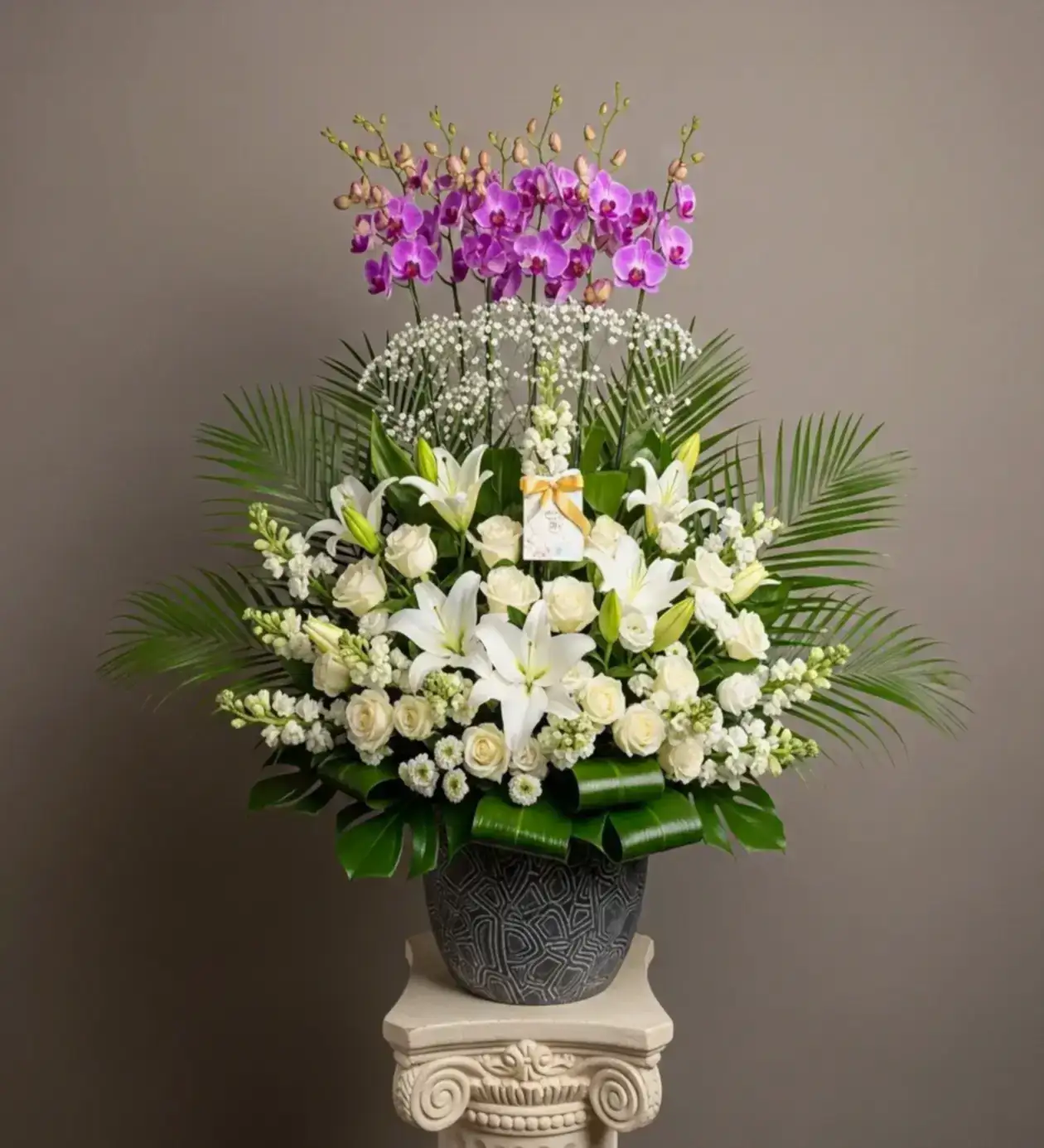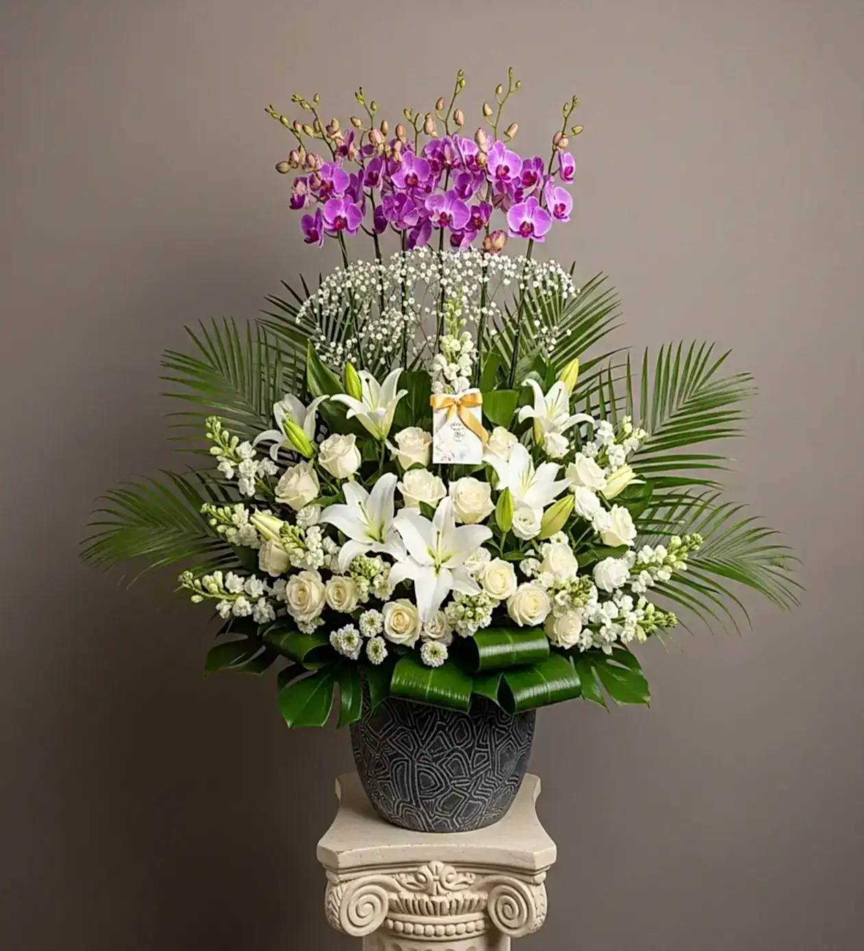✨ Mor orkidenin asaleti ve beyaz çiçeklerin saflığıyla sevdiklerinize unutulmaz bir hediye gönderin. Şimdi sipariş verin!