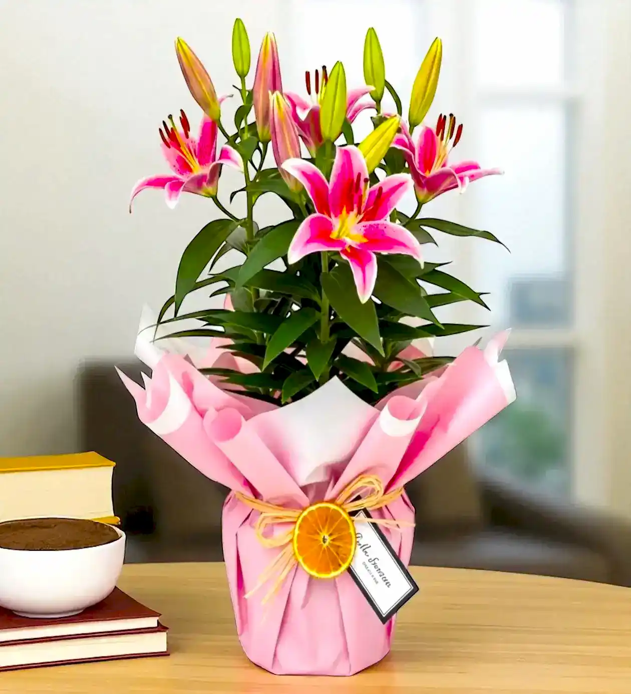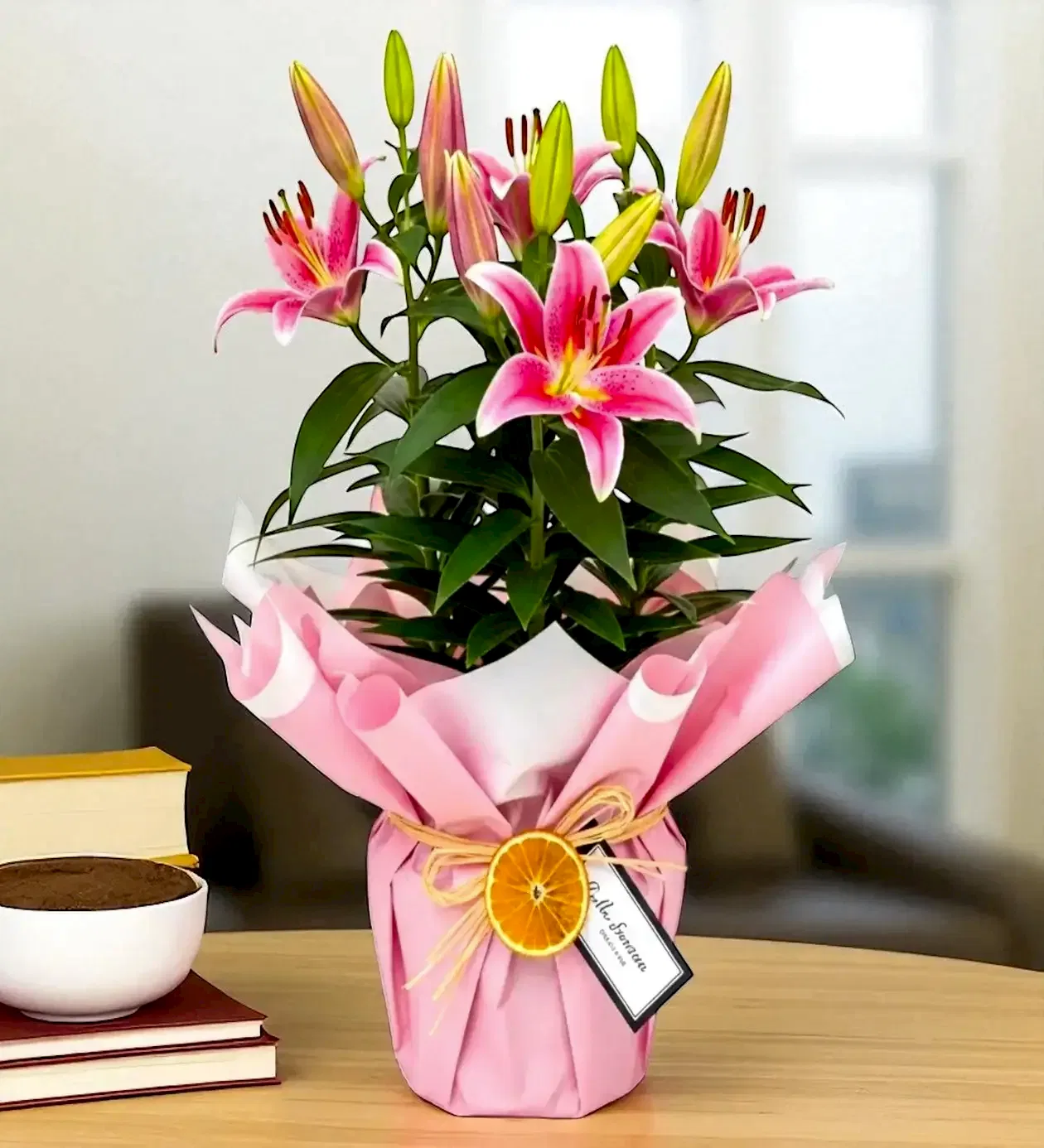🌸 Canlı pembe zambak çiçeği (saksılı bitki)
