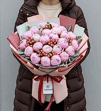 Gösterişli bir ilk izlenim bırakmak isteyenler için tasarlanmış bu zarif buket, premium ithal pembe şakayıklar ile hazırlanmıştır. Her biri özenle seçilen, büyük ve dolgun formda şakayık çiçekleri, baharın taze zarafetini taşırken, aralarına serpiştirilen somon tonlarında hiperikum meyveleri, tasarıma sıcaklık ve zenginlik katar.