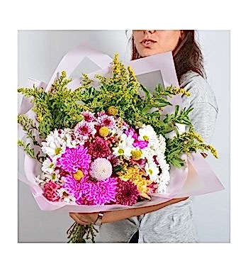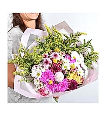 Pro Whimsy Bouquet içerisinde soli, pembe papatya,beyaz papatya, ve turuncu papatya mevcut olup uzman çiçek tasarım ekibimizin sizler için yakınlarınızın özel günlerinde harika bir hediye fırsatı sunmaktadır.