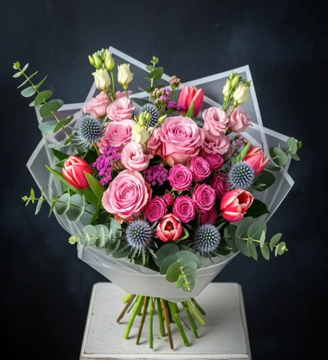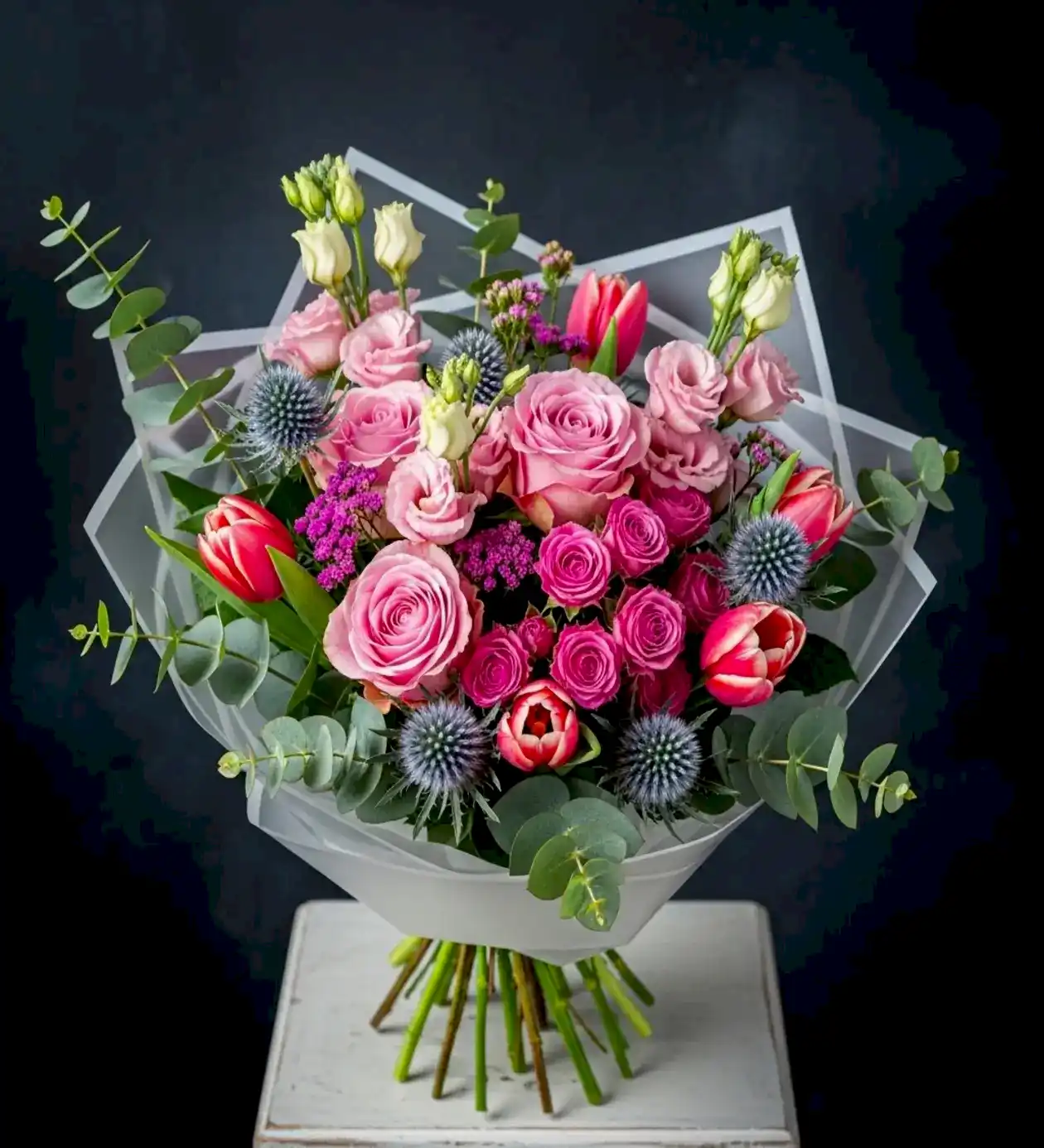 3-4 adet Eryngium (mavi diken çiçeği – egzotik dokunuş)