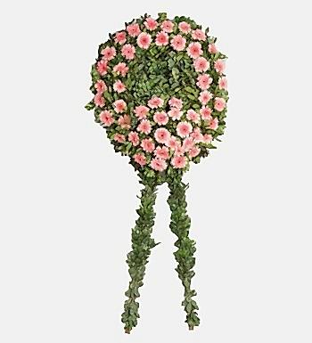 Sonsuz Anılar Cenaze Çelengi içerisinde pembe gerbera ve mevsim yeşillikleri mevcut olup uzman çiçek tasarım ekibimizin sizler için yakınlarınızın özel günlerinde harika bir hediye fırsatı sunmaktadır