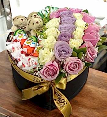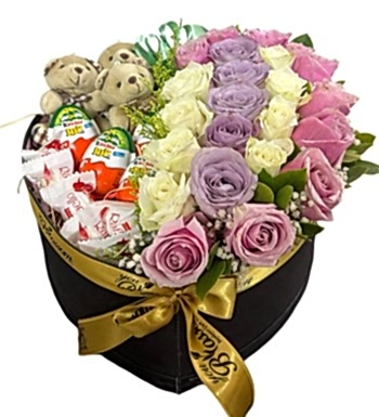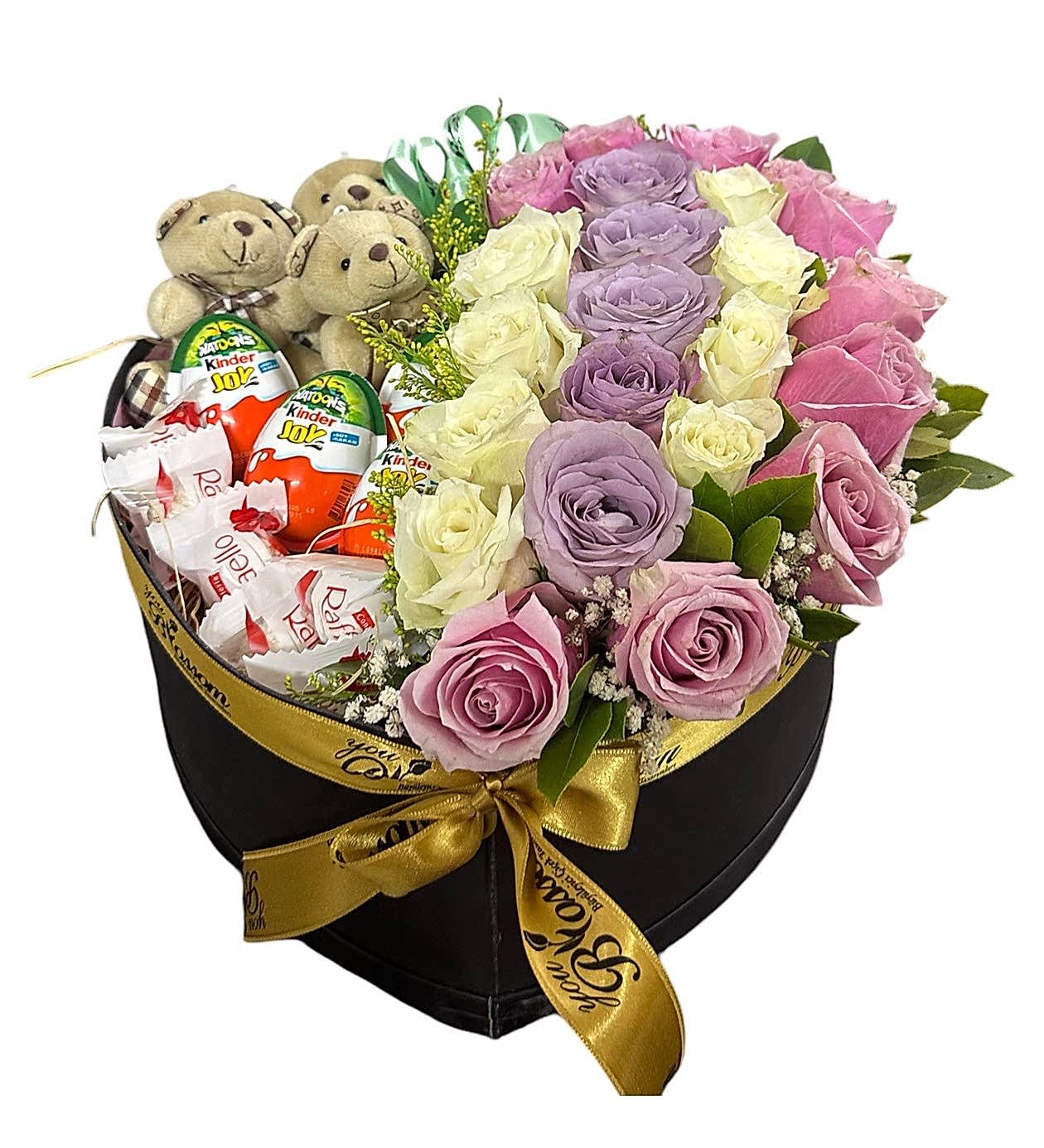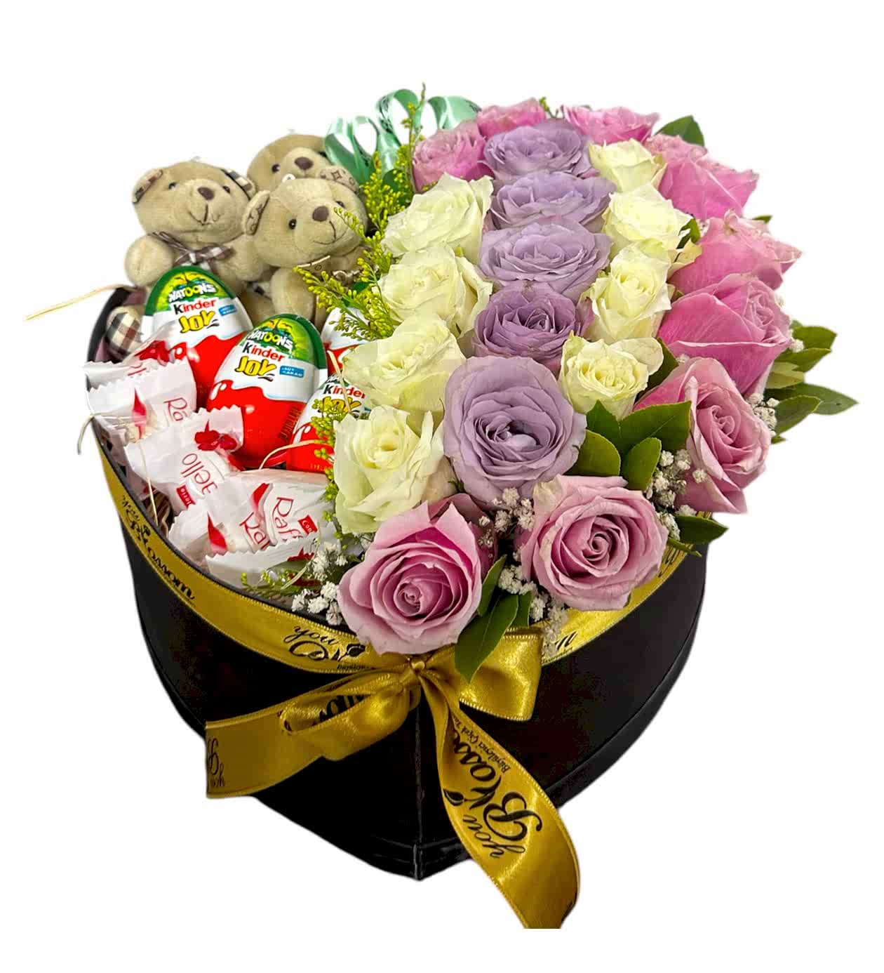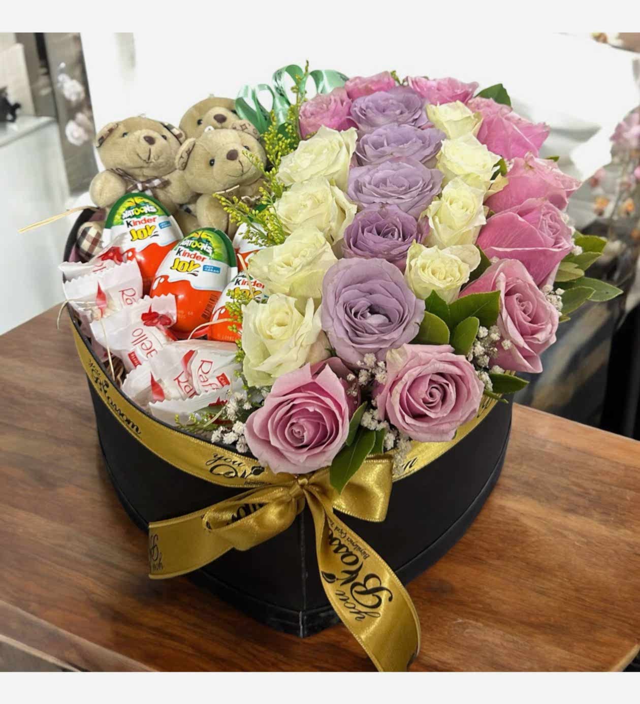 Teddy Bear Colourful Roses içerisinde lila gül, pembe gül, beyaz gül ve somon gül, teddy ayıcık ve surpiz yumurta, raffaello mevcut olup uzman çiçek tasarım ekibimizin sizler için yakınlarınızın özel günlerinde harika bir hediye fırsatı sunmaktadır.