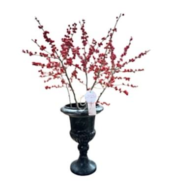 Yeni yılın zarif dokunuşunu evinize taşımak ister misiniz? Siyah desenli özel tasarım saksıda hazırladığımız Ilex crenata aranjmanı, yılbaşının büyüleyici atmosferini yansıtırken dekorasyonunuza şıklık katacak.